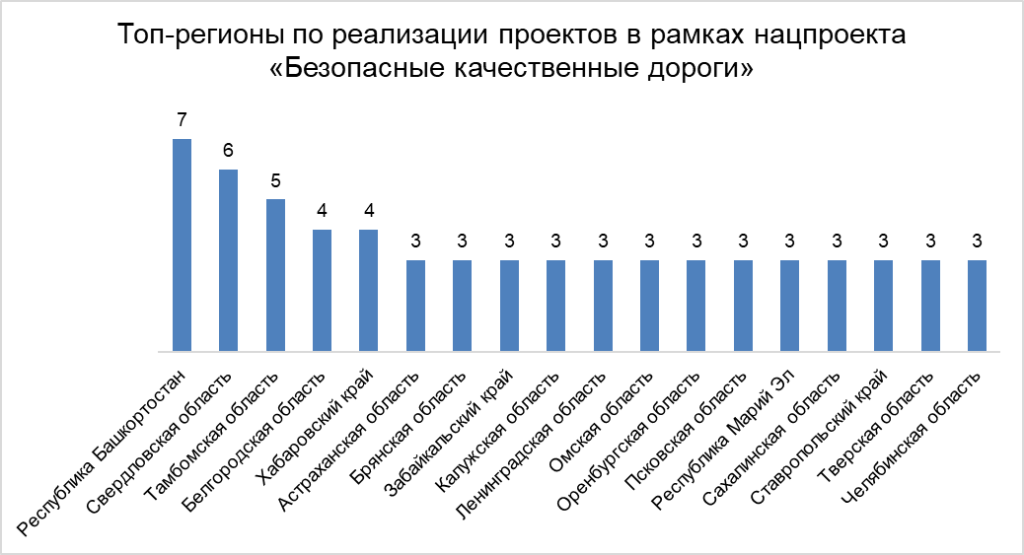 Топ- регионы по реализации проектов в рамках нацпроекта «Безопасные качественные дороги»
