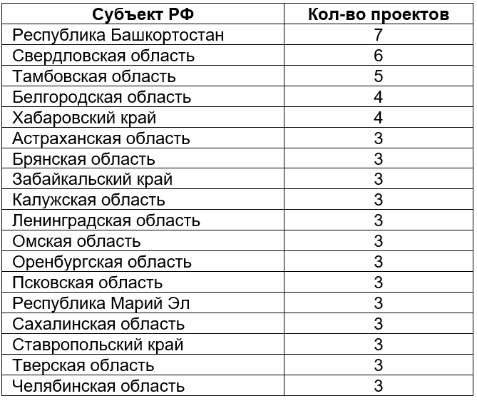 Лидерами по реализации нацпроекта являются Республика Башкортостан, Свердловская и Тамбомская области.